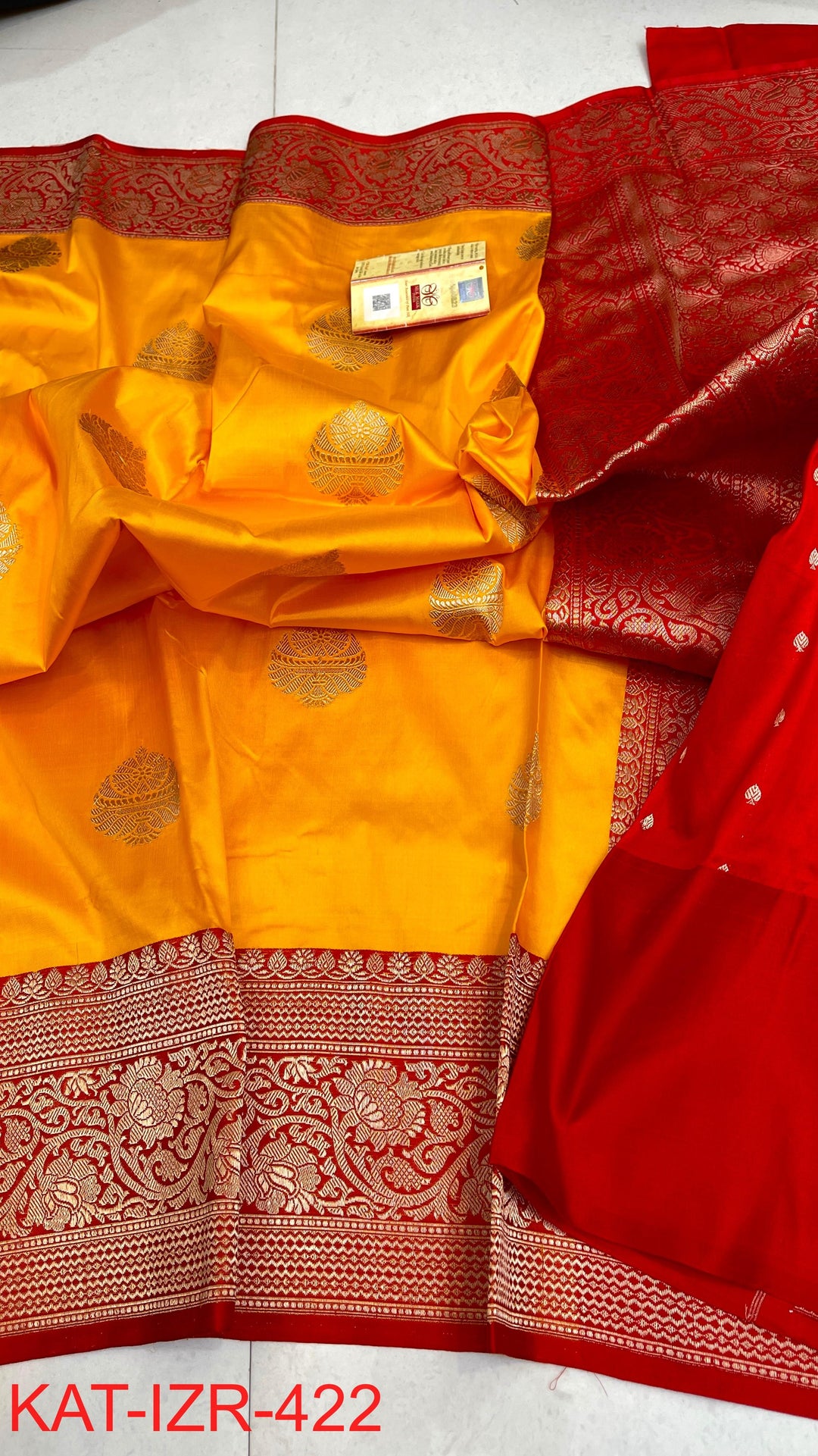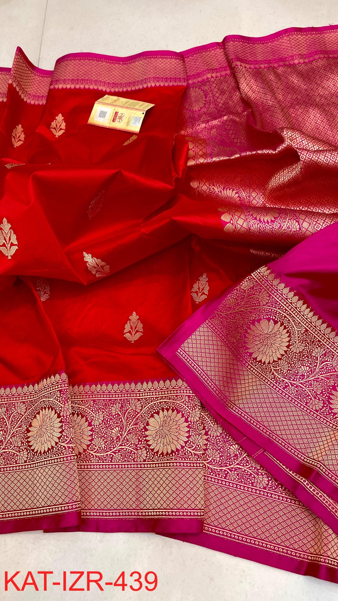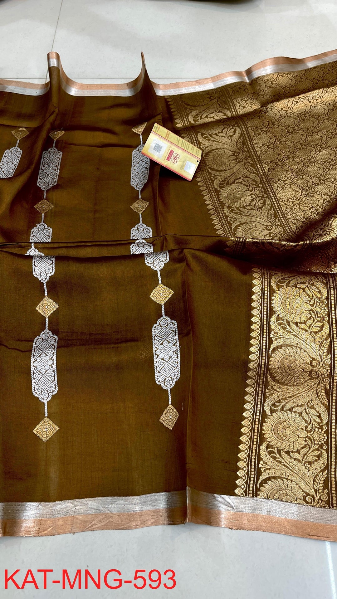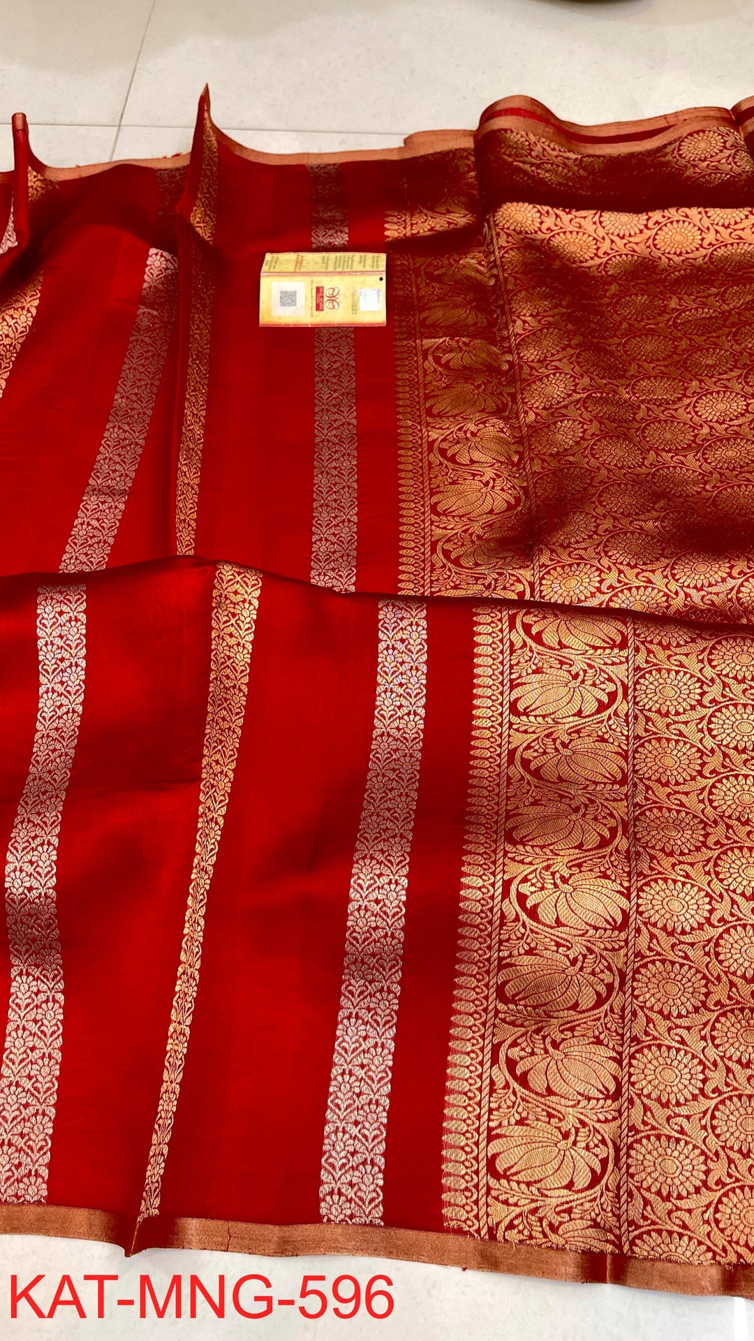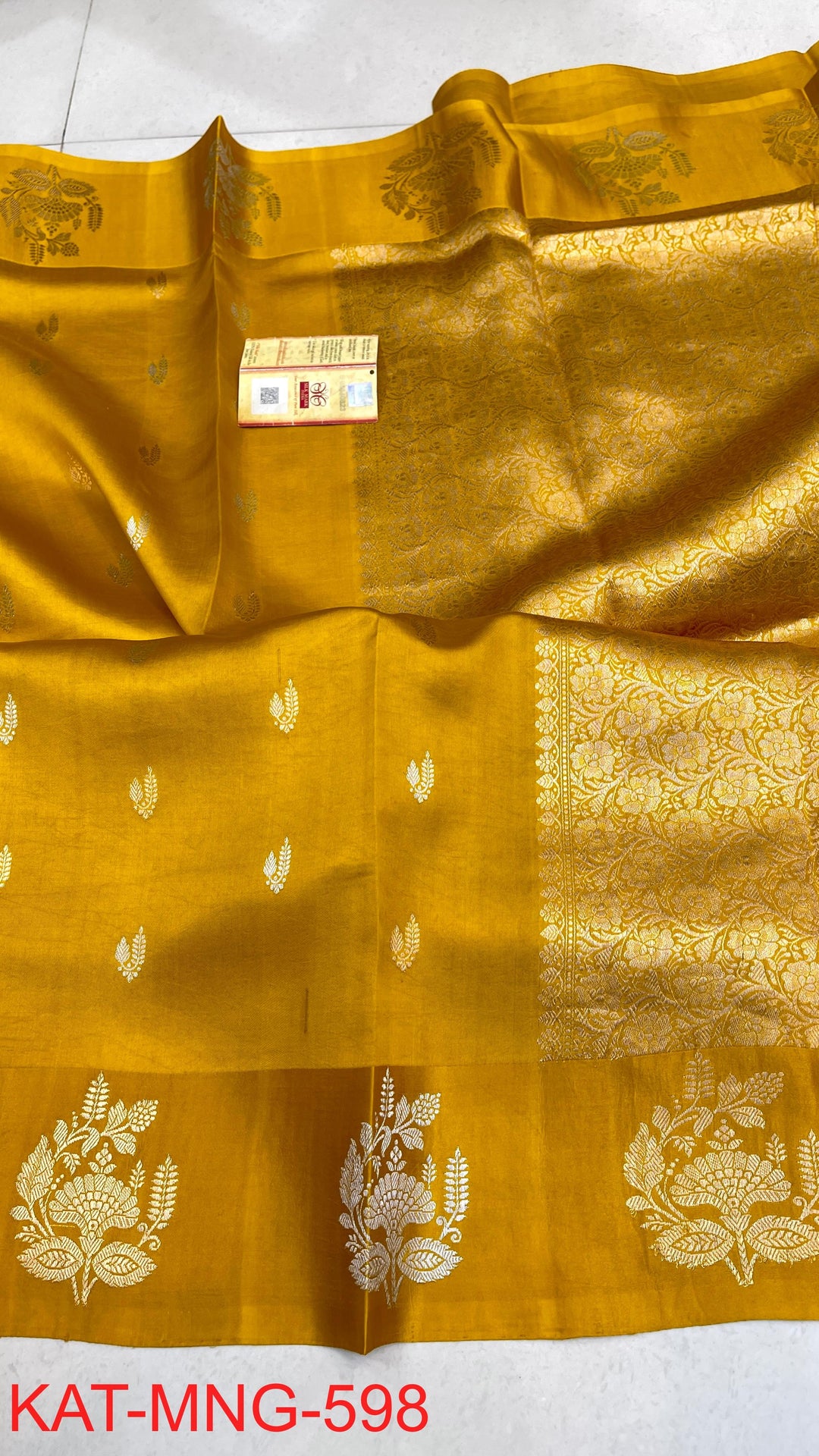 Exclusive Pure Banarasi Khaddi Chiffon Saree with Rich pure Gold Zari Buti , With Traditional Banarasi Style Border And Pallu ( length- 6.3 meter ) (Copy)