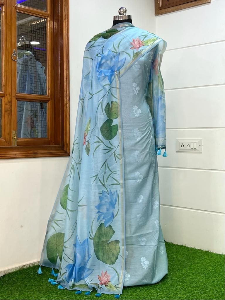 Banarasi Chanderi Silk Zari work unstitched Suit With Chanderi Pichwai Floral Dupatta.