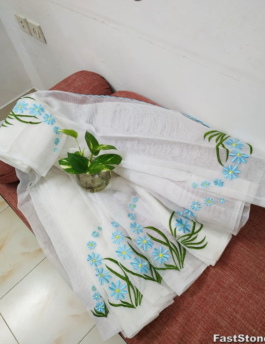 Pure Cotton Kota Doriya Embroidery work Saree With Blouse