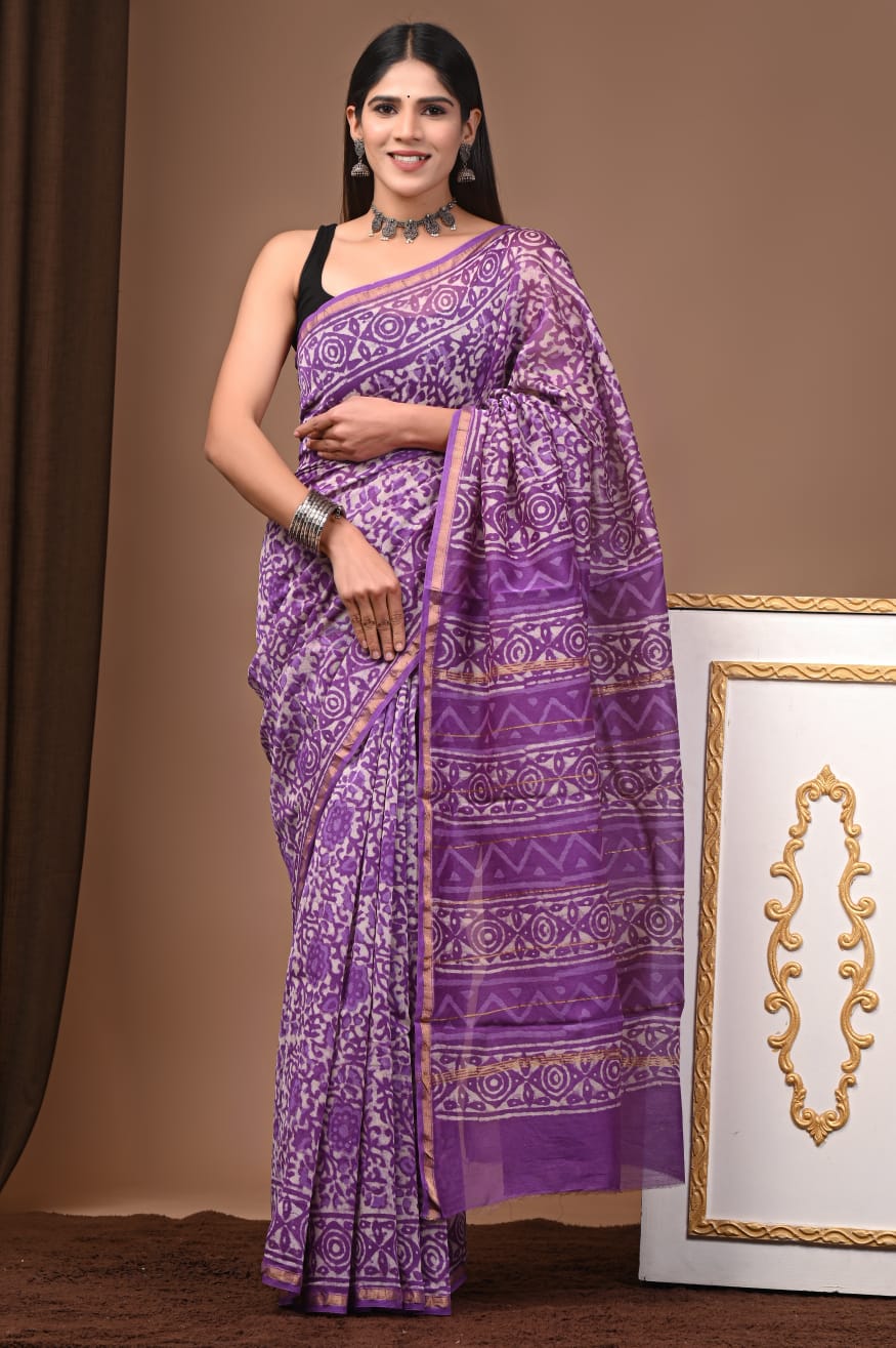 Hand Block Print Pure Chanderi Saree With Blouse .