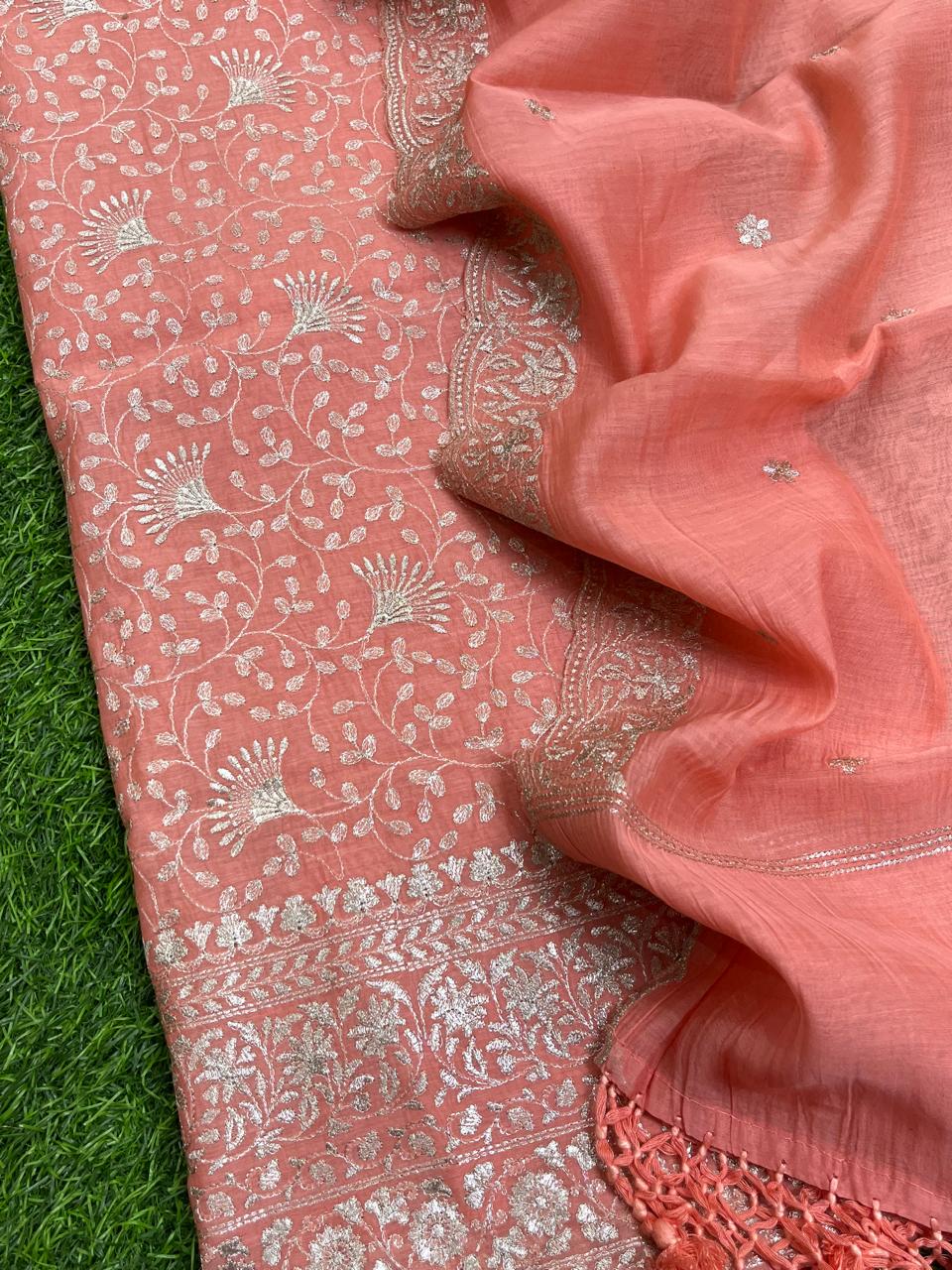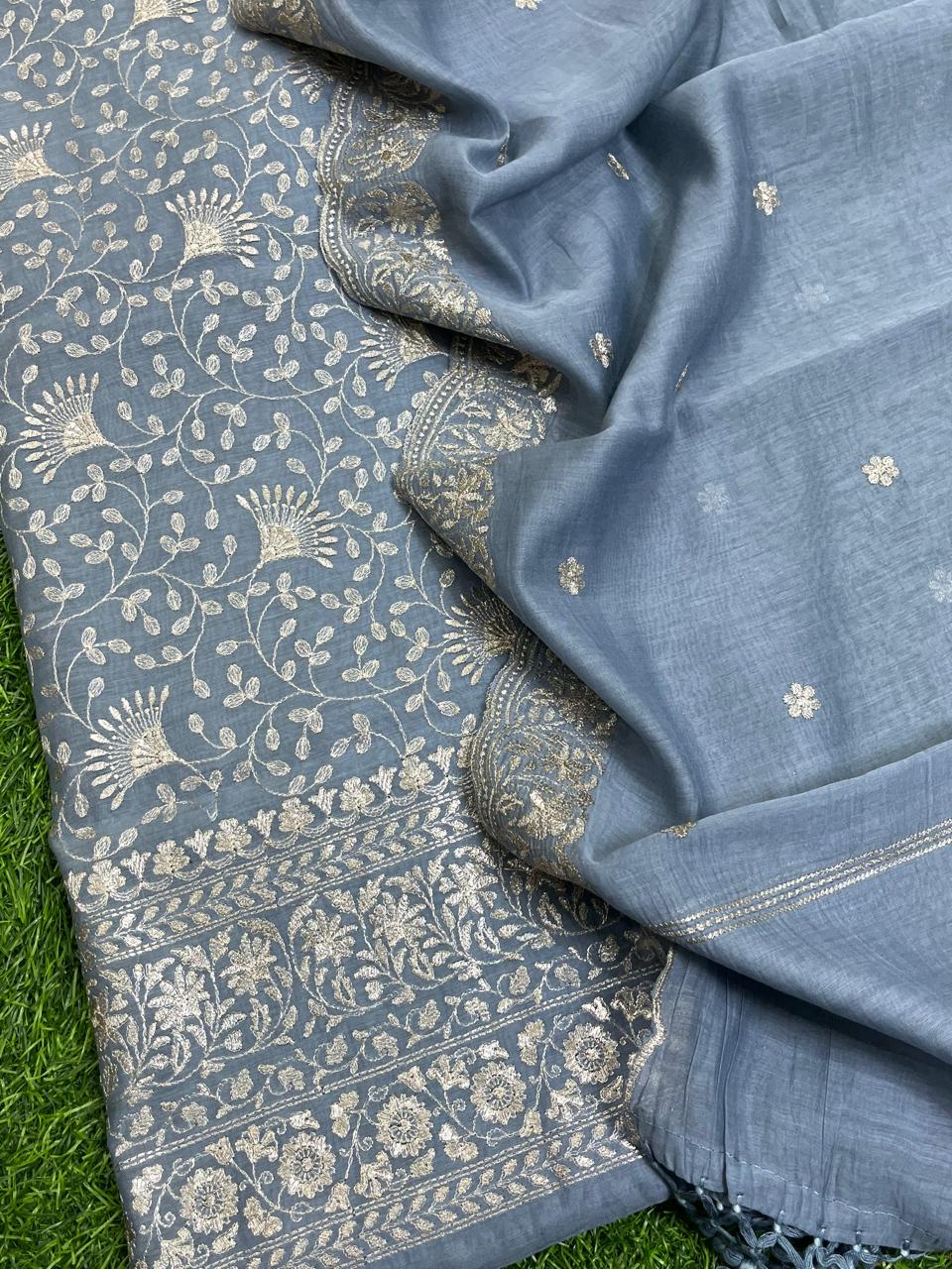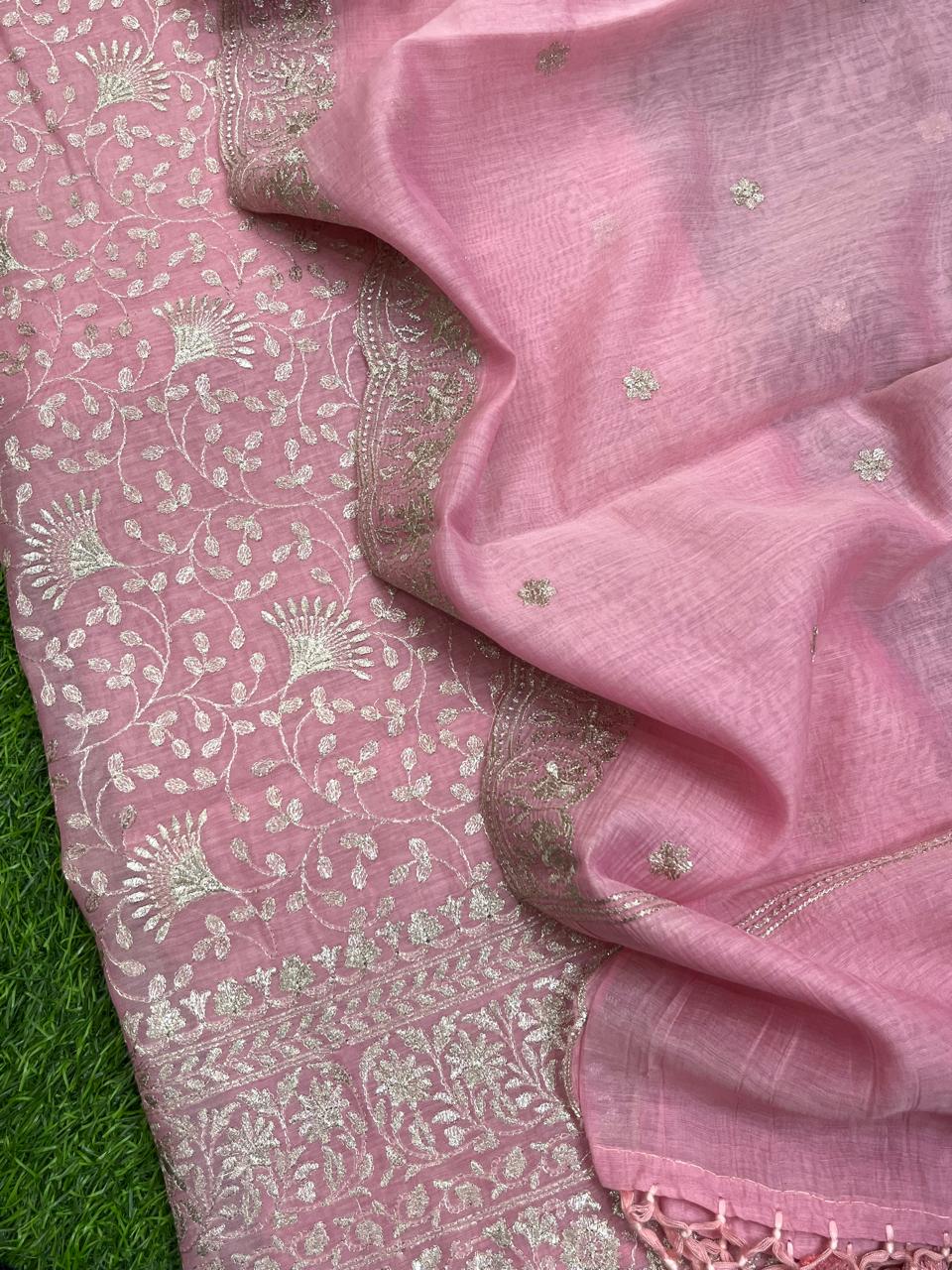 Pure Banarasi Mul Chanderi Unstitched Suit with Zari Embroidery Work