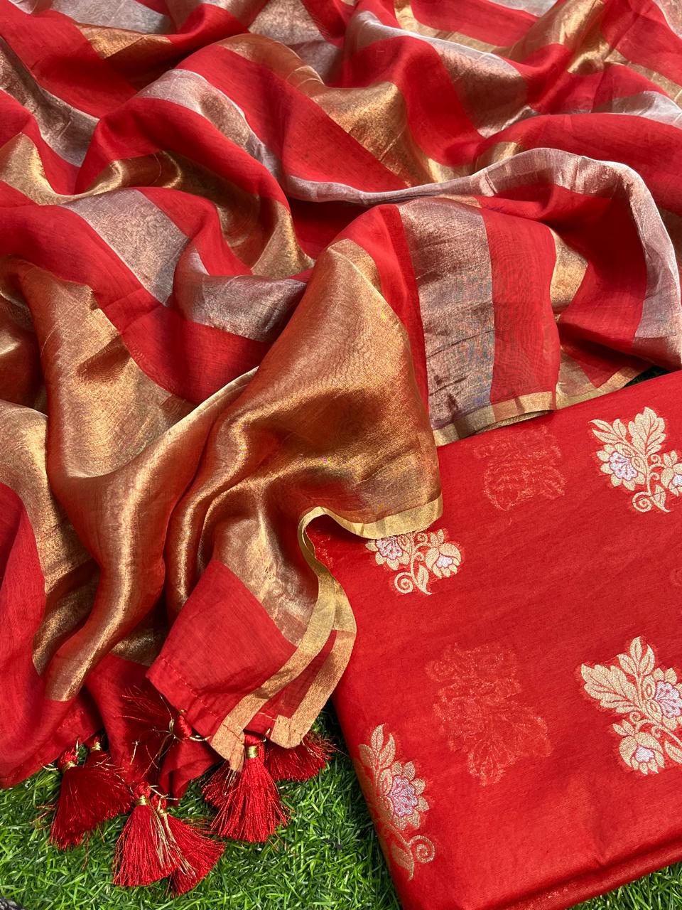 Pure Banarasi Tissue Silk Unstitched Suit With Crushed Tissue dupatta