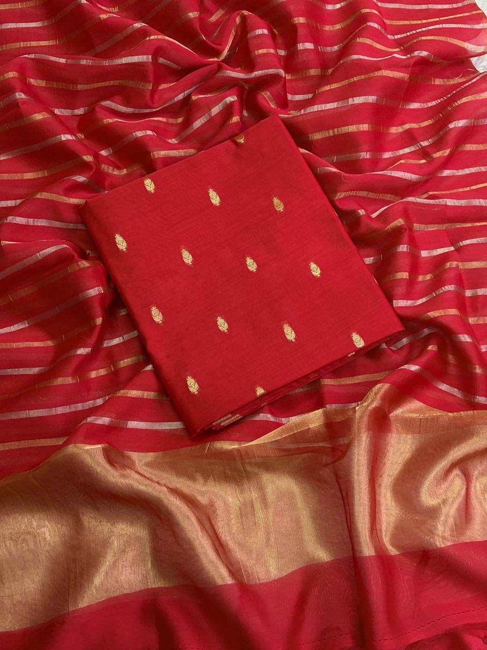 Pure Banarasi Cotton Lorex zari Buti weaved Unstitched Suit With Pure Organza Zari weaved Dupatta.
