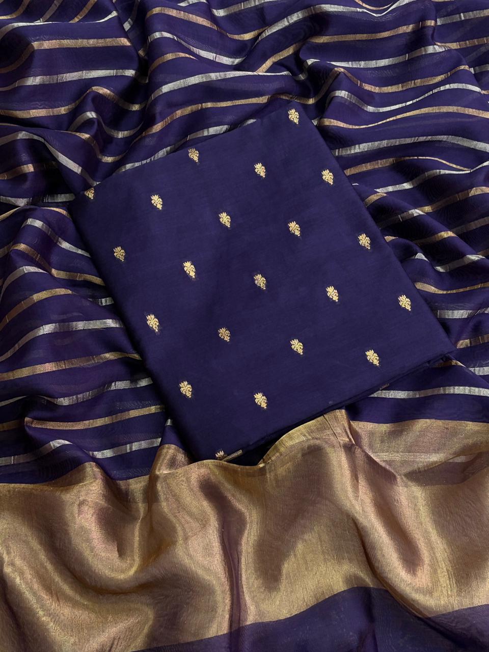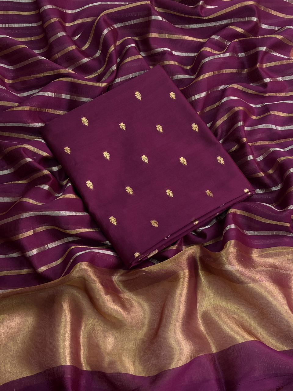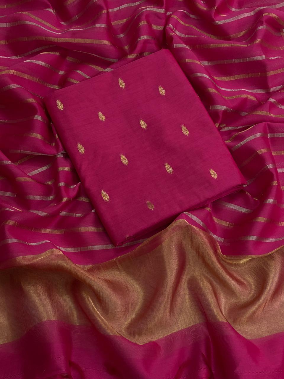 Pure Chanderi Silk Unstitched Suit set With Sona rupa buti