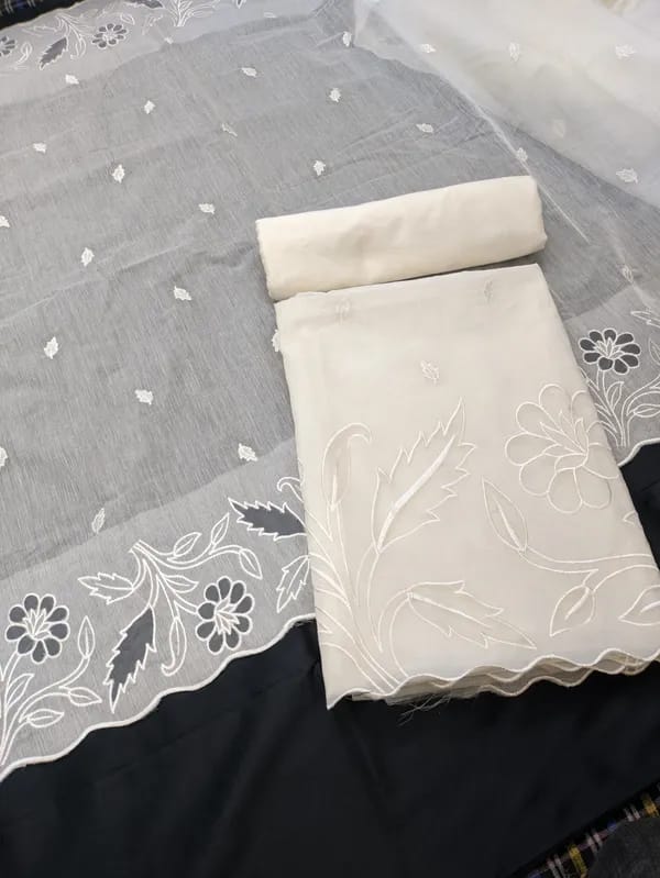 Exclusive Banarasi Mul- Chanderi Applique Work Unstitched Suit
