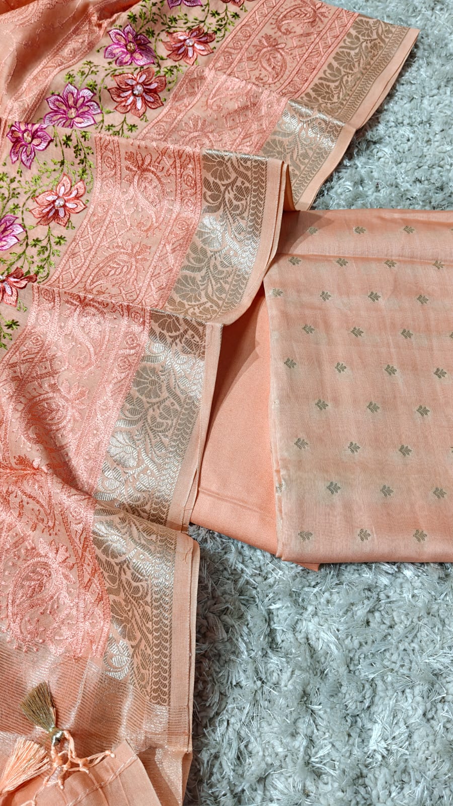 Banarasi Chanderi Silk zari Work Unstitched Suit .Embroidery work Dupatta.
