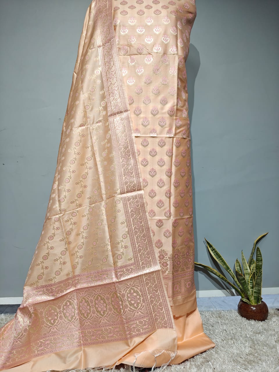 Pure Banarasi Silk Zari weaved unstitched suit with dupatta.