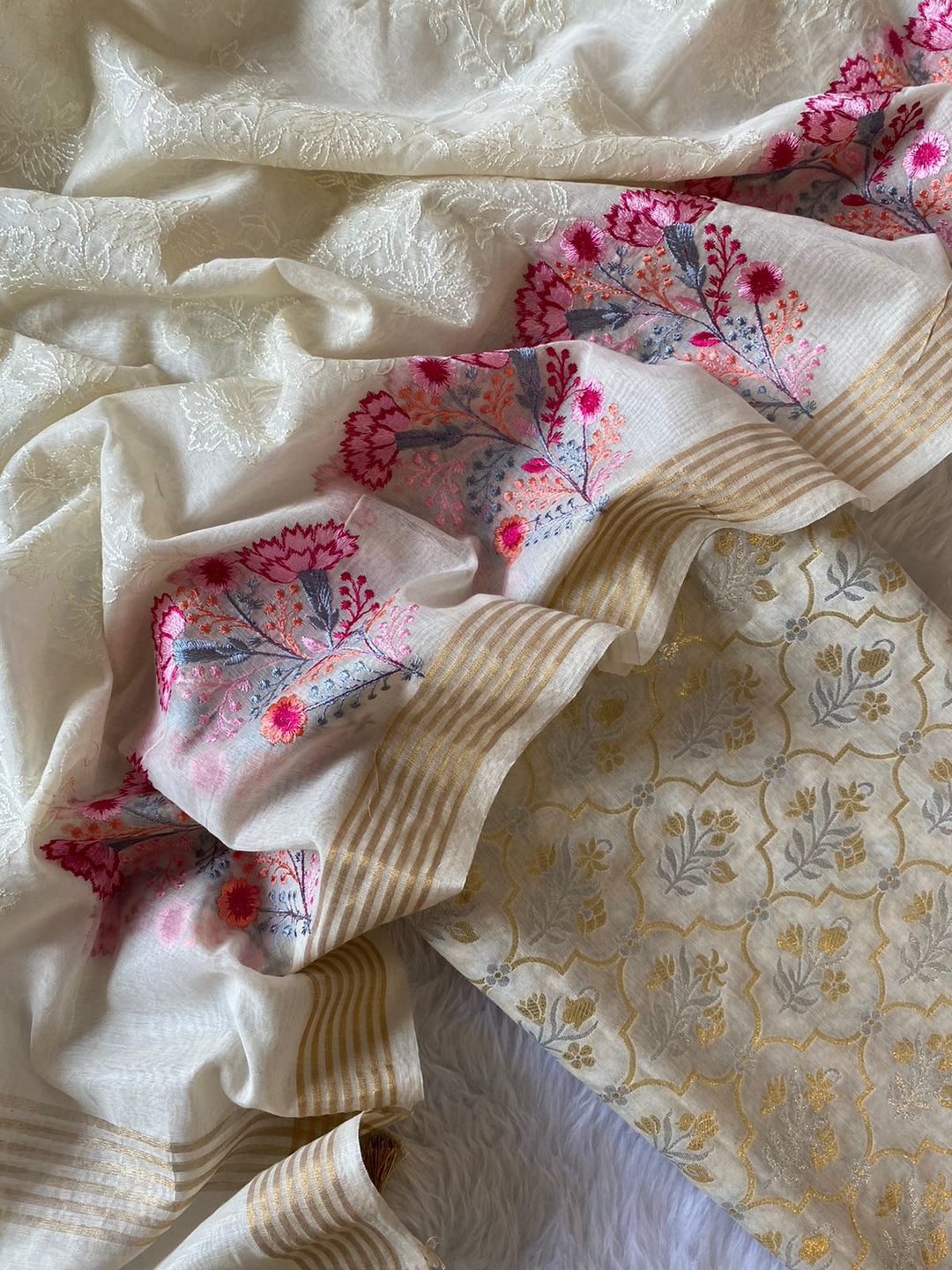 Along with the timeless charm of pure silk, our collection also features different styles of Banarasi work. Explore our lightweight Banarasi Chanderi suits—great for anyone who loves soft, elegant designs with a light feel.