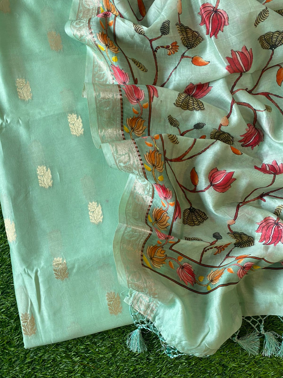 At Fabpersona, we ensure our Banarasi silk suits are 100% authentic, handwoven with fine silk, and featuring traditional floral and geometric zari patterns. Many of our pieces carry the GI tag certifying their origin from Varanasi. When shopping with Fabpersona, you can trust the detailed product descriptions and our commitment to quality craftsmanship.