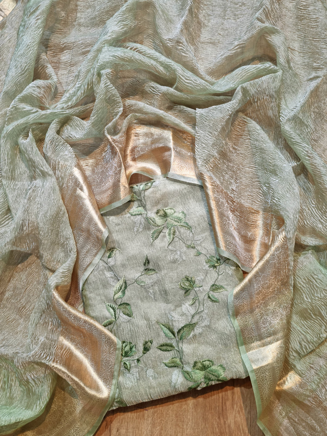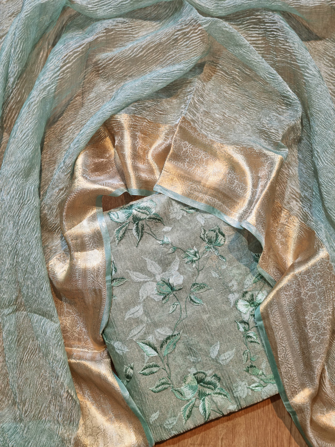 Discover the Feather-Soft Elegance of Handwoven Banarasi Tissue Silk Suits.