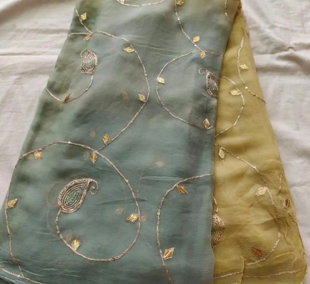 HANDCRAFTED ZARI AND GOTA EMBROIDERY WORK JAAL CHIFFON SAREE