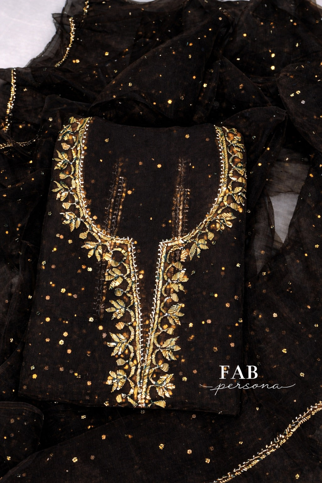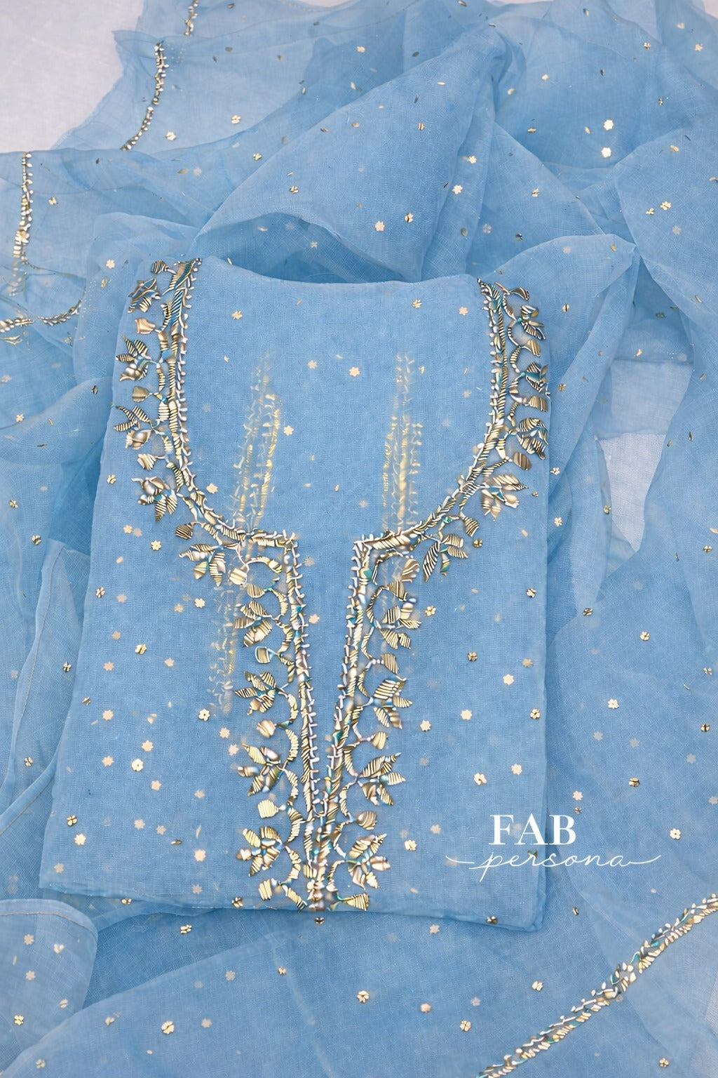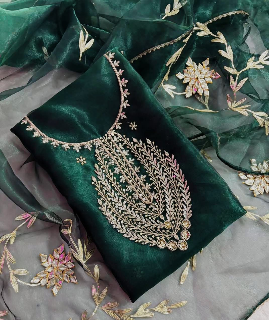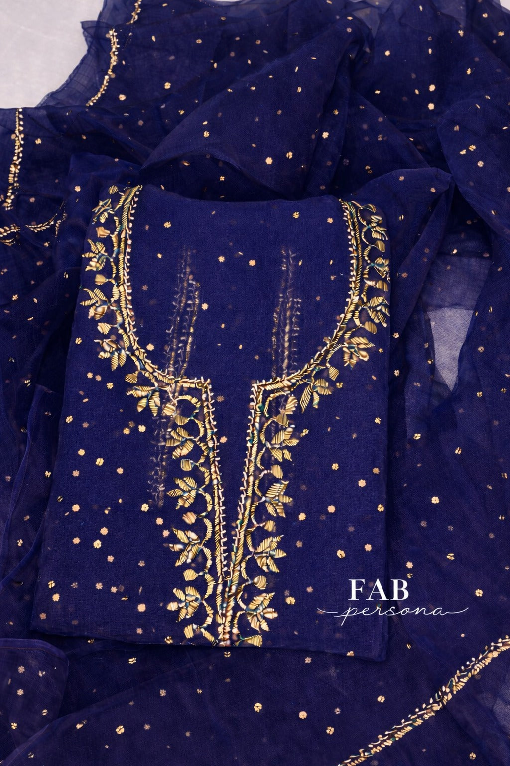 Organza Hand Zardosi work unstitched kurta with Organza Gotta patti Work Dupatta.