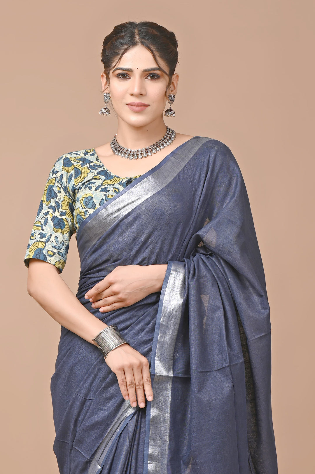 Handblock Printed Linen Saree – Pure Linen Weaves with Artisanal Prints