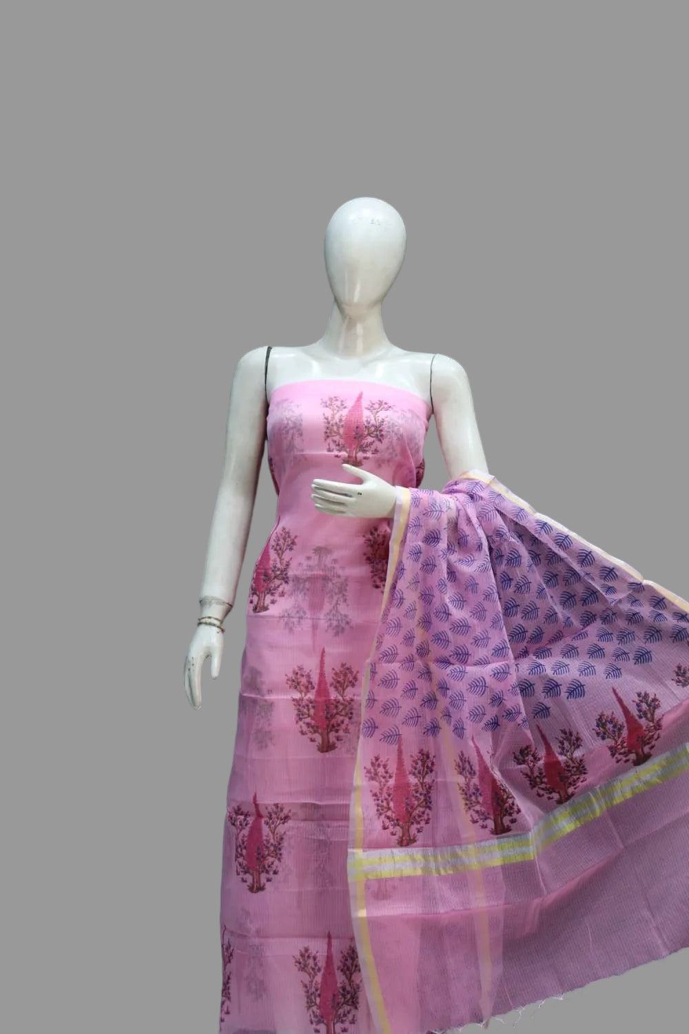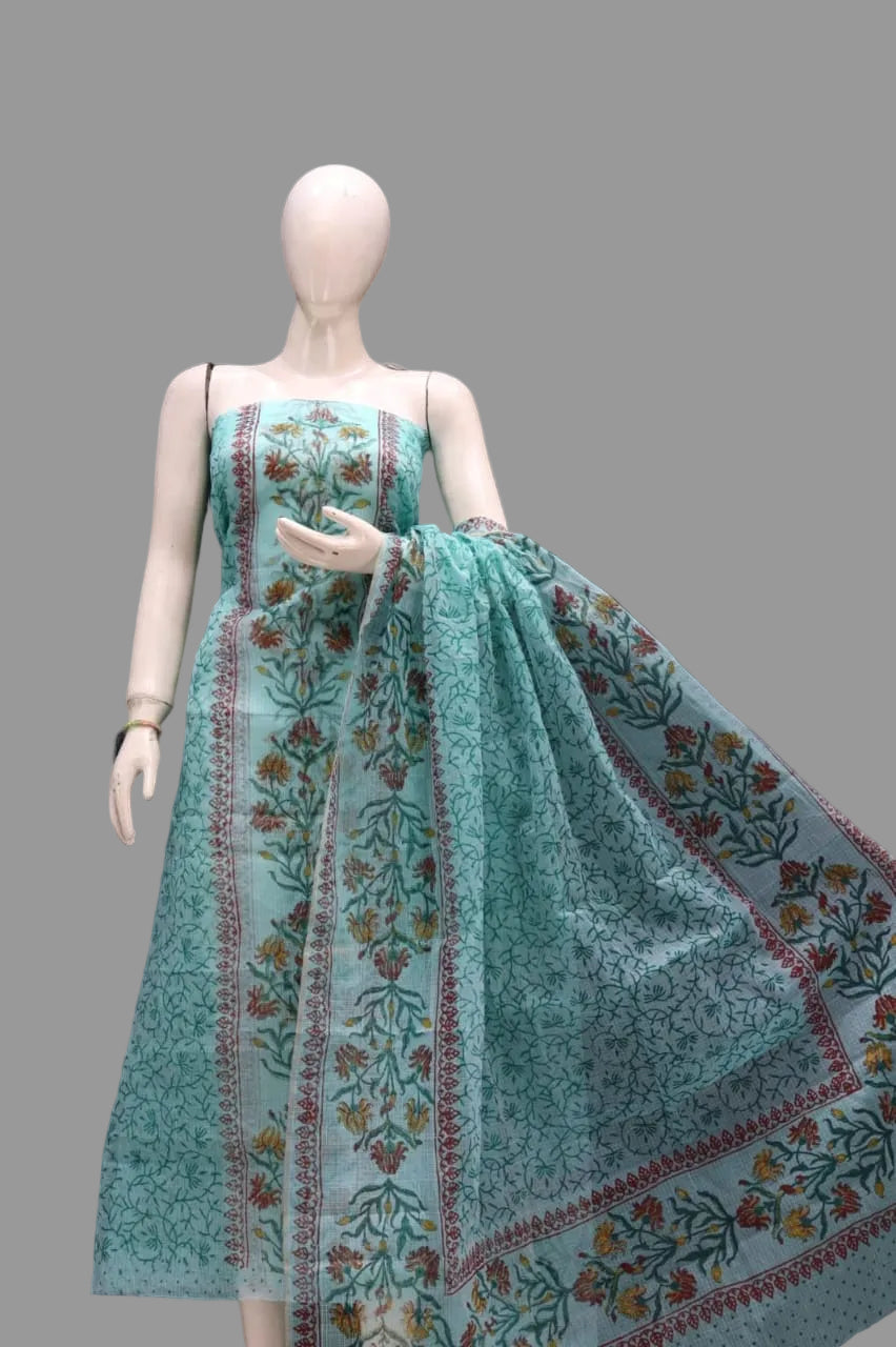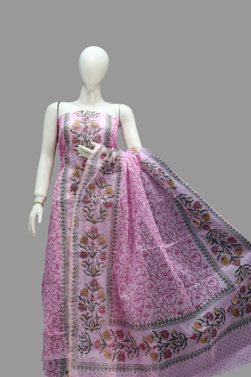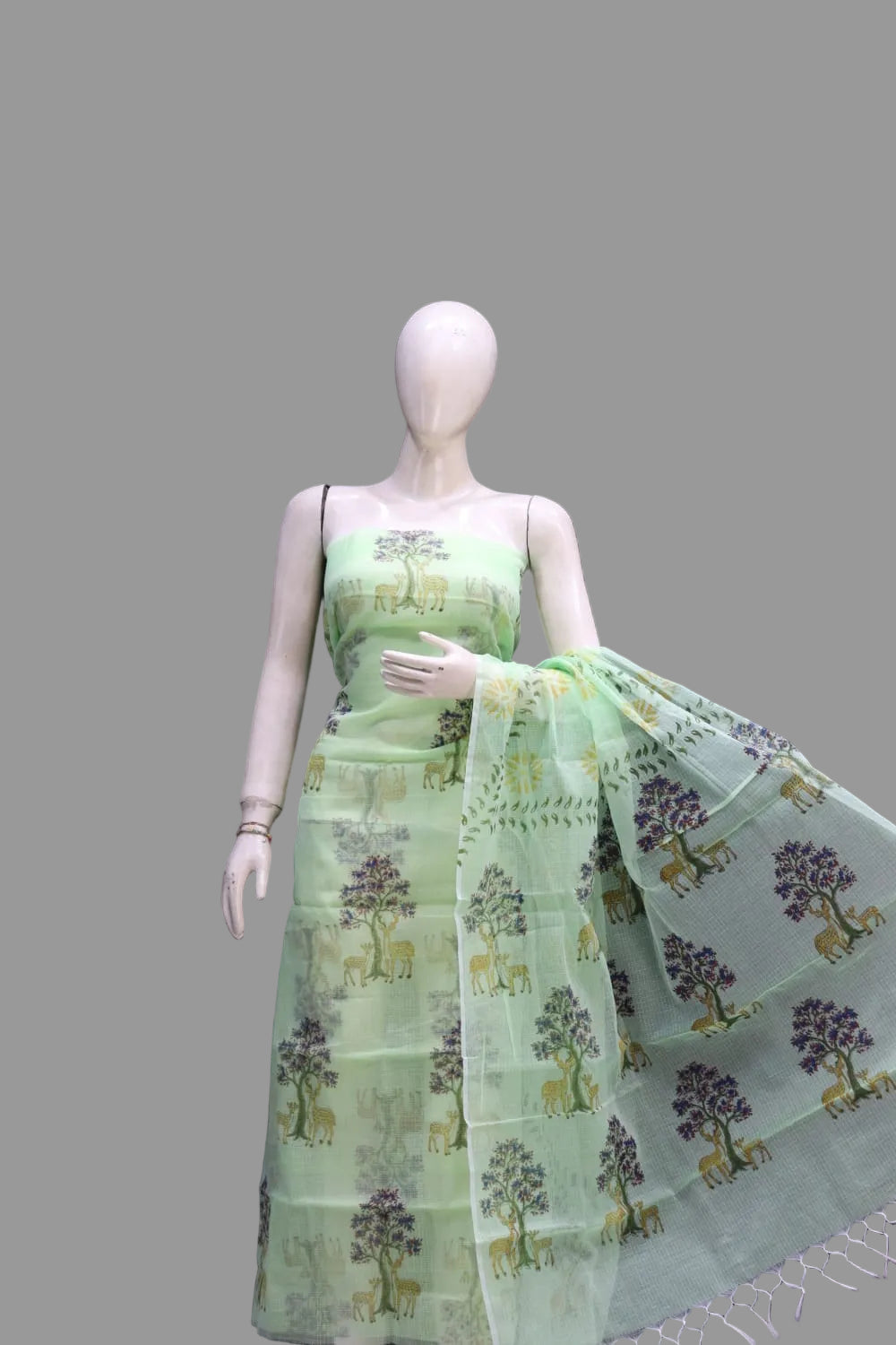 Pure Kota Doria Hand Brush Print Work Unstitched Suit with Dupatta