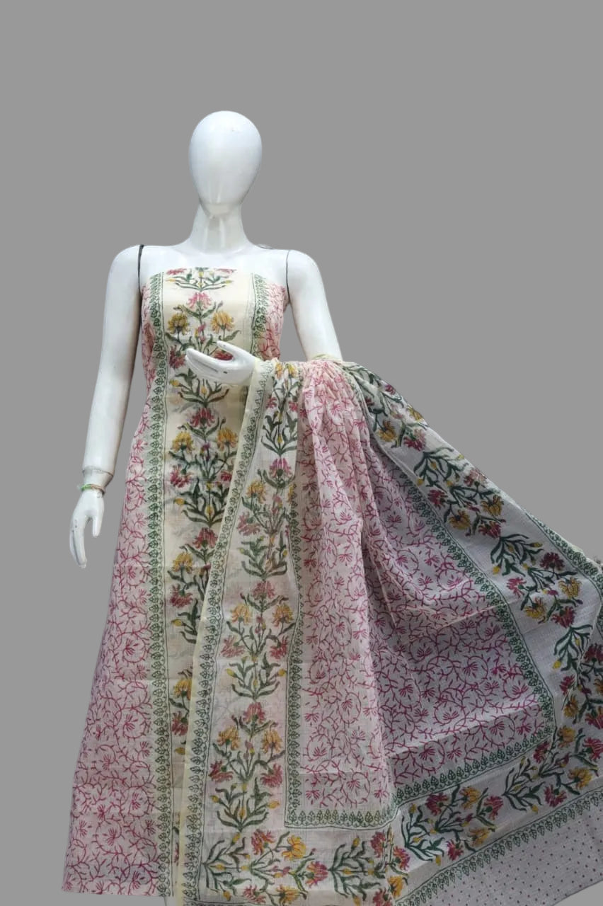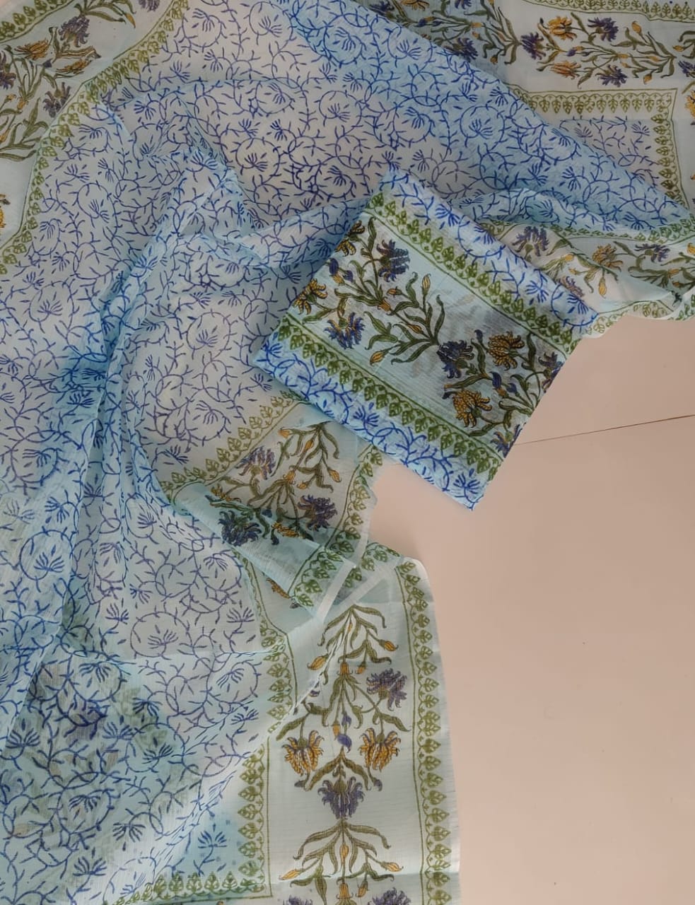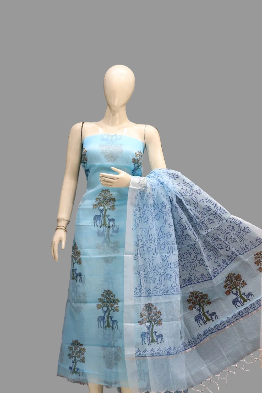 Pure Kota Doria Hand Brush Print Work Unstitched Suit with Dupatta