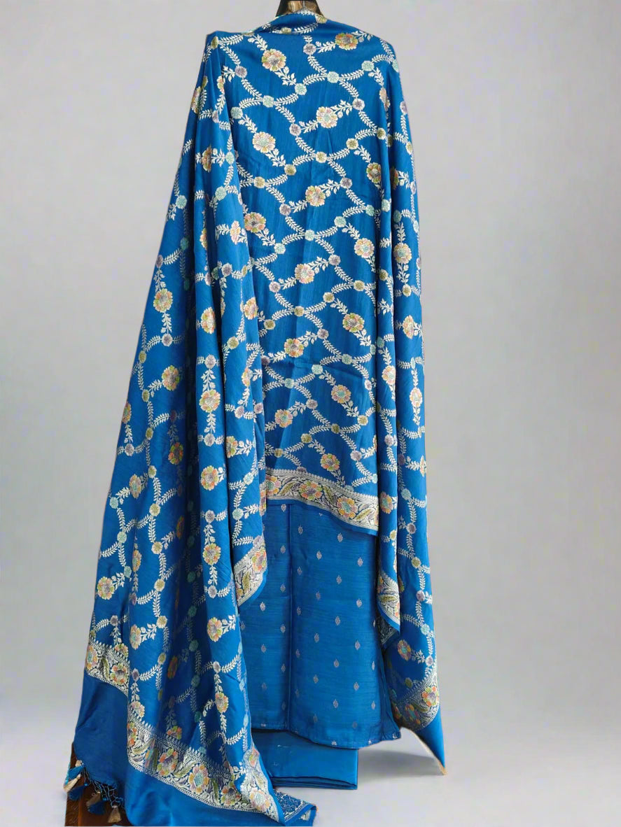 Premium Quality Handloom Weaved Pure Munga Silk 3pc Unstitched Suit with Zari Weaved Brush Paint Munga Dupatta