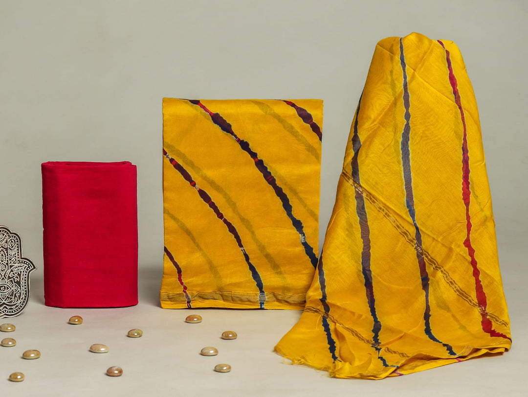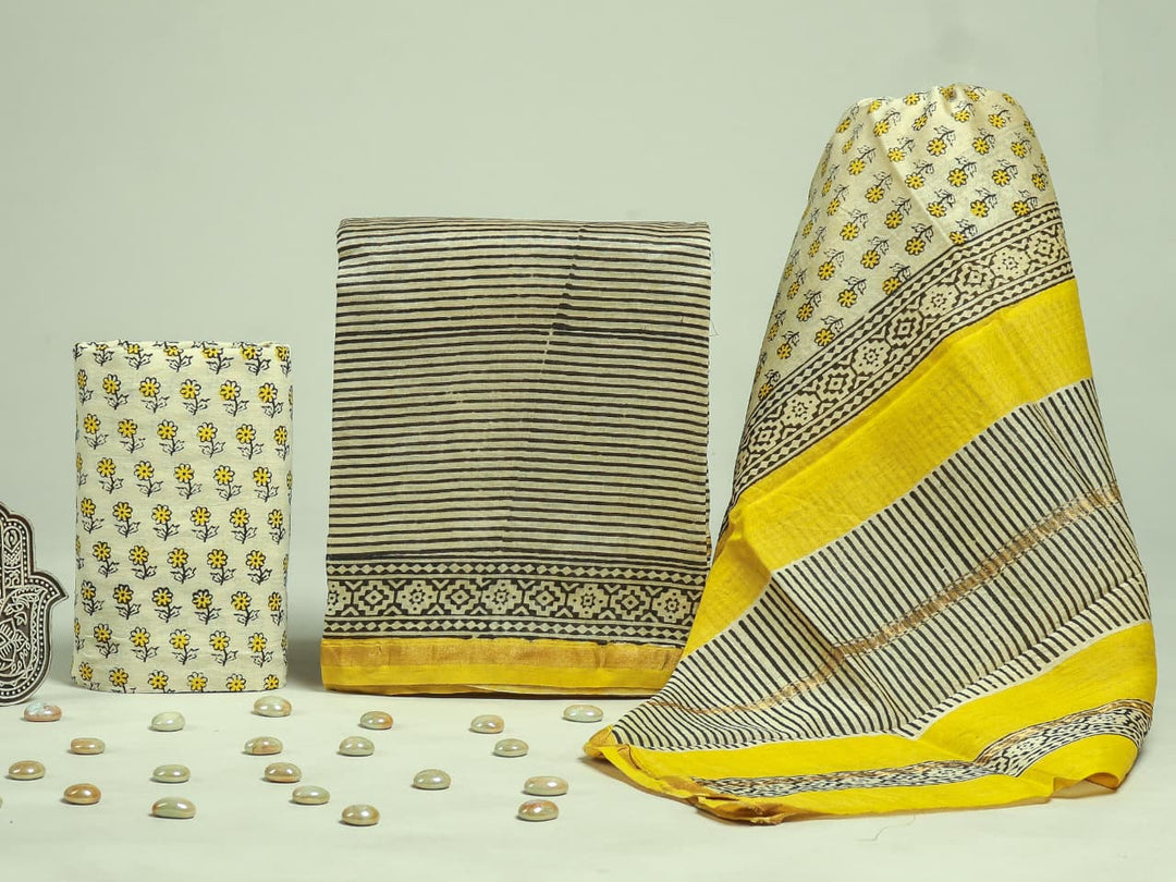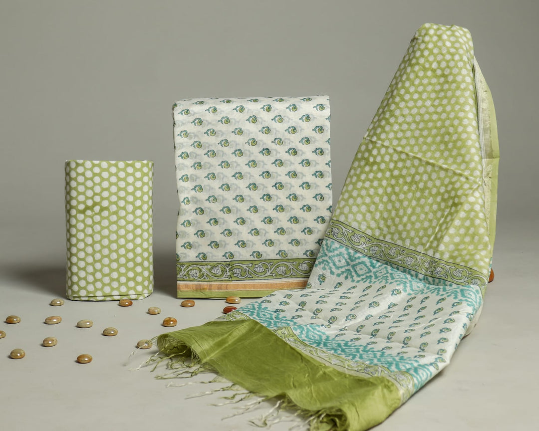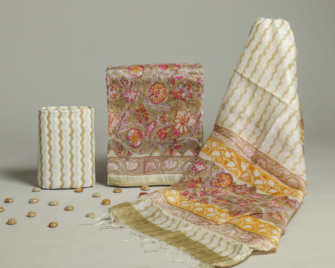 Pure Hand Block Chanderi Silk Unstitched Suit.