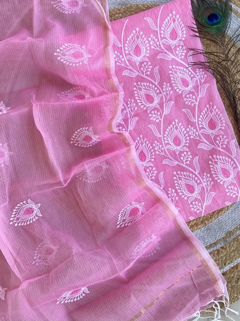 Pure Kota Doriya Embroidered Unstitched Suit With Dupatta