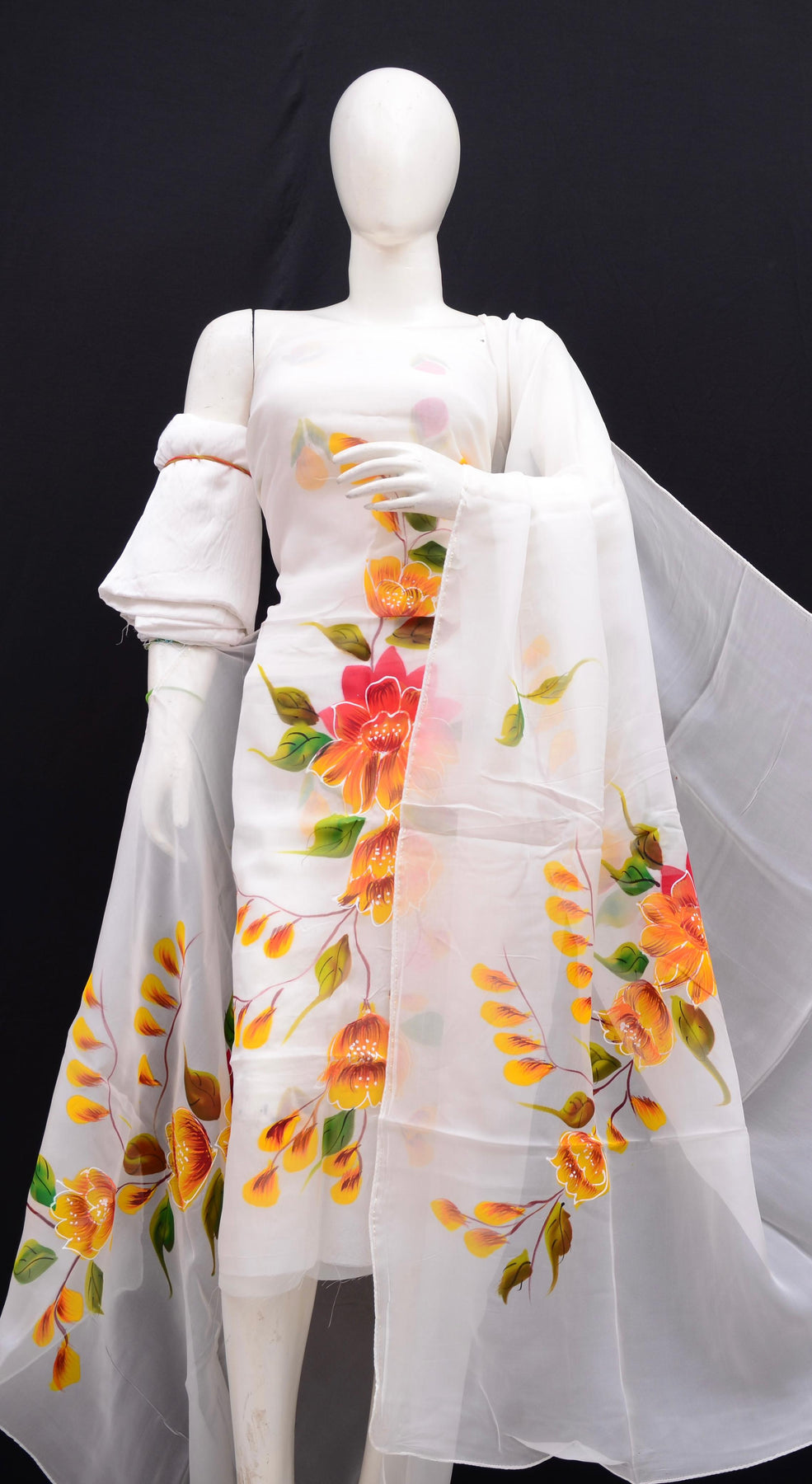 Exclusive design Organza Hand painted 3 pc Unstitched Suit