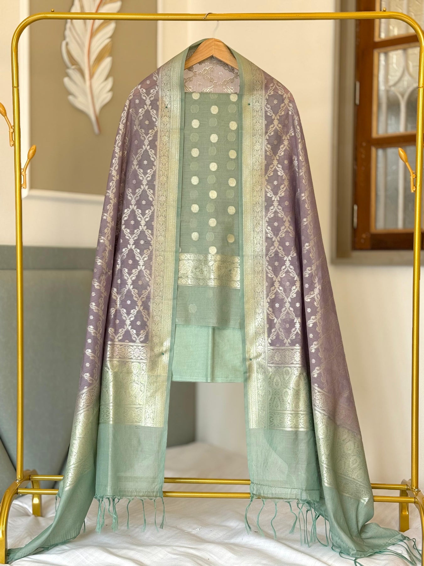 Pure Moonga Silk Unstitched Suit with Water Zari work