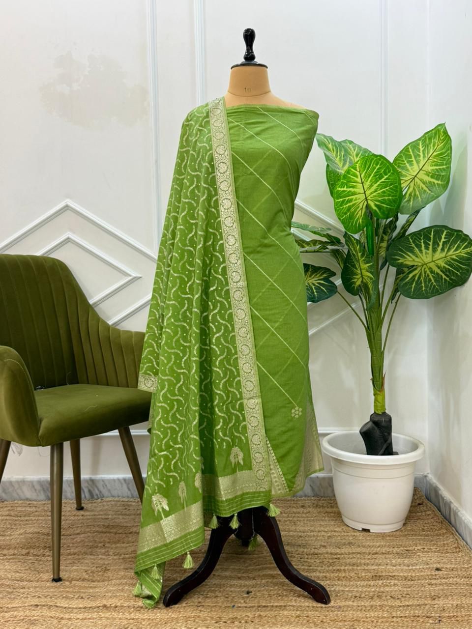 Banarasi Cotton Unstitched Salwar Suot with Zari patta and polka Dot