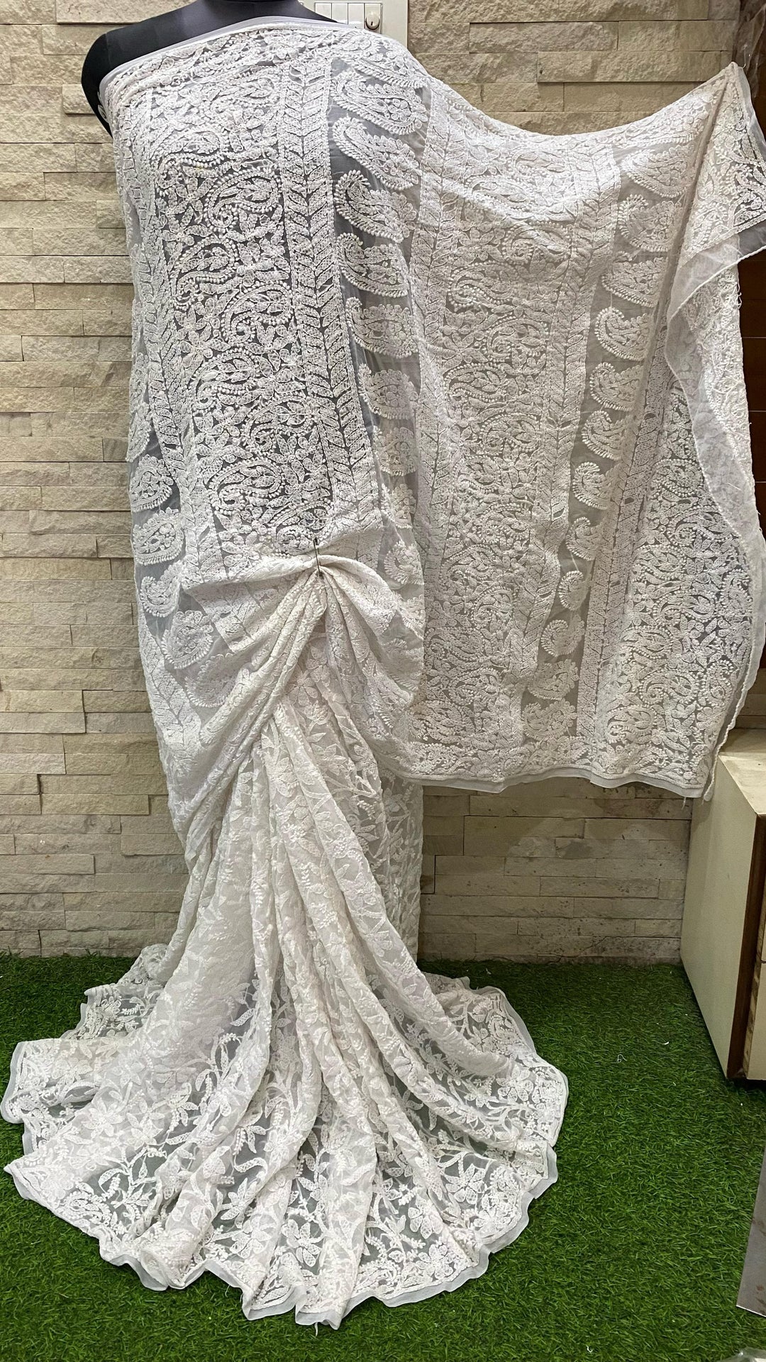 Pure Chiffon Georgette Chikankari Full Jaal Work Hand Embroidery Saree with Blouse