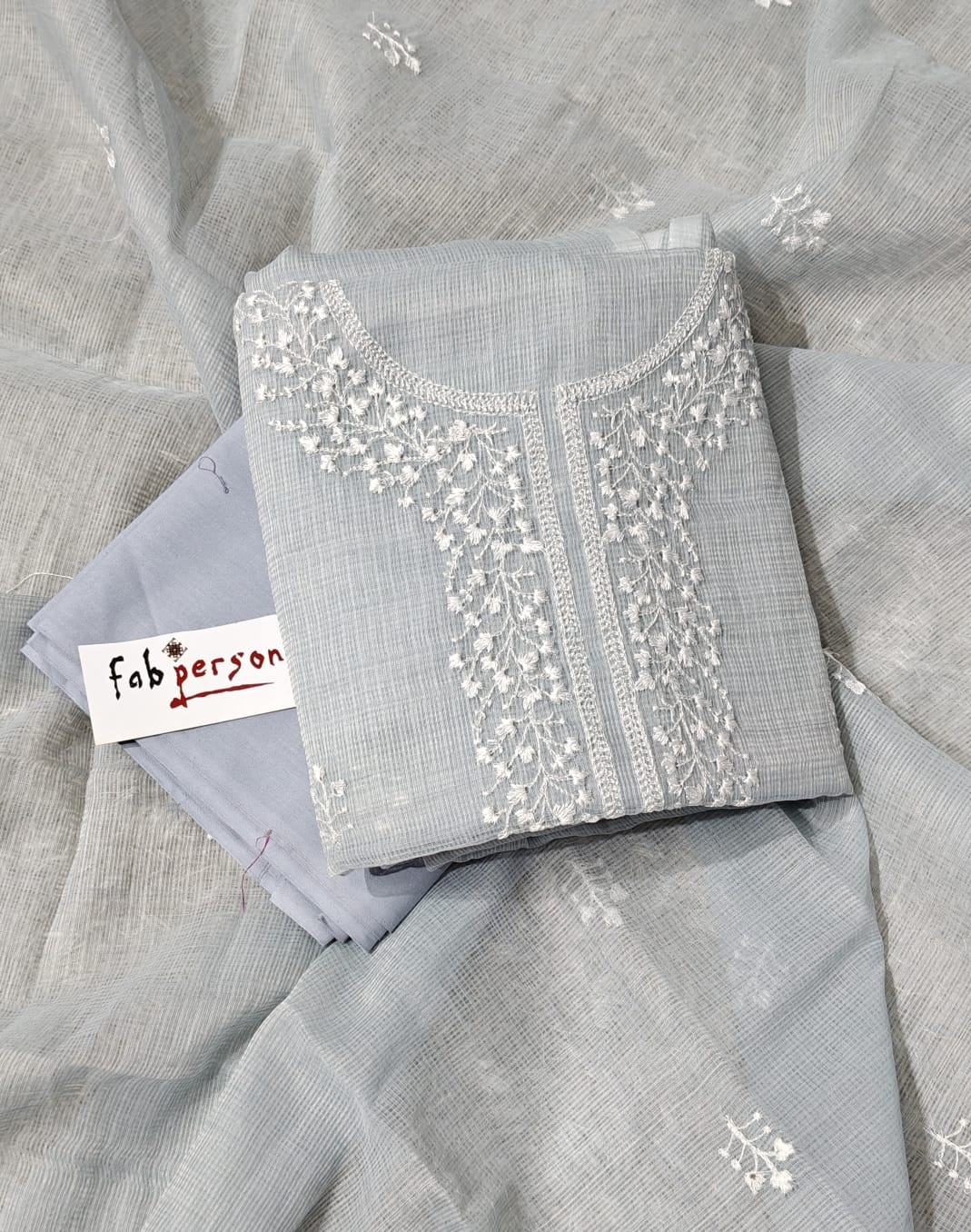Pure Cotton Kota Doriya Embroidery Unstitched Suit With Dupatta.