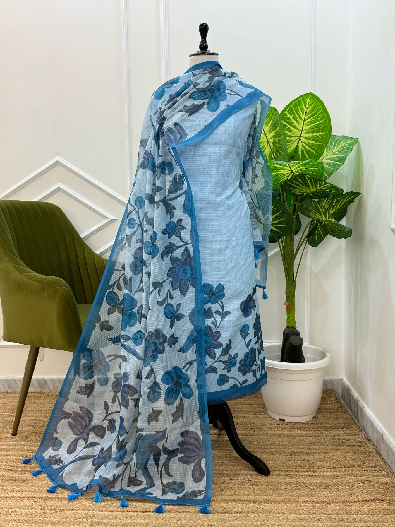 Pure Banarasi Kota Silk Unstitched Suit With Digital Print Dupatta