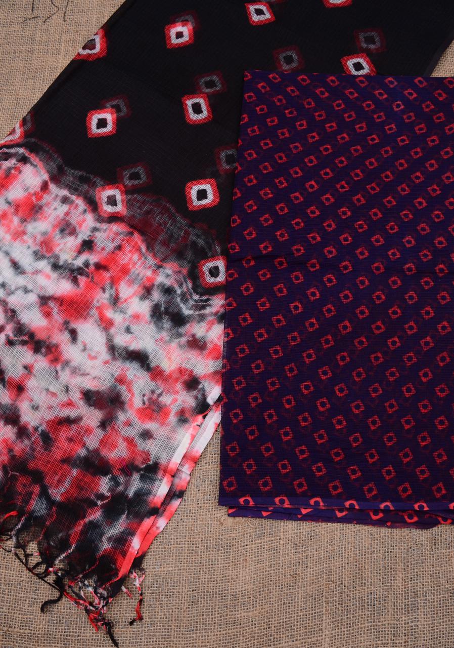 Pure Cotton Kota- Doria Unstitched Suit with Bandhej Work