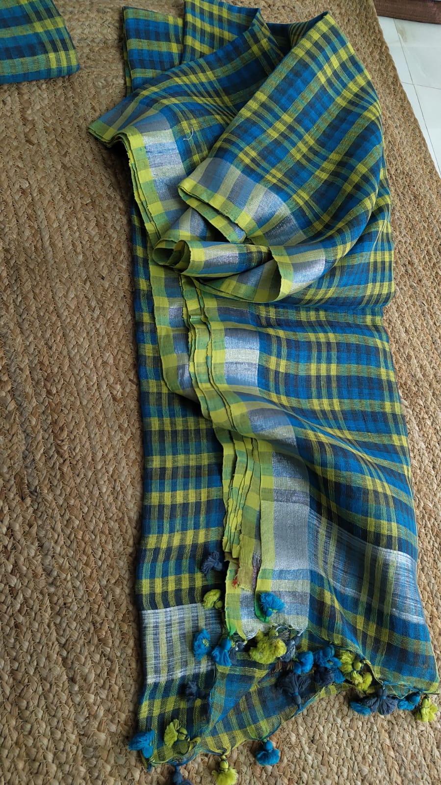 Pure Joyshree Linen Check Saree With Blouse Pc ( 100 count)