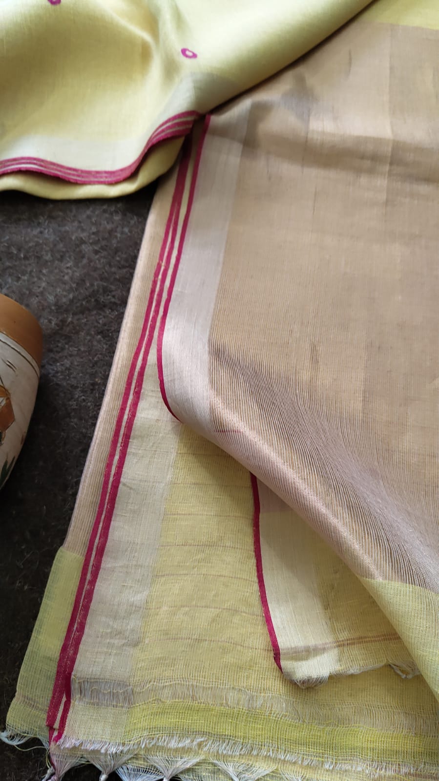 Pure Joyshree Linen Tissue Saree With Blouse Pc