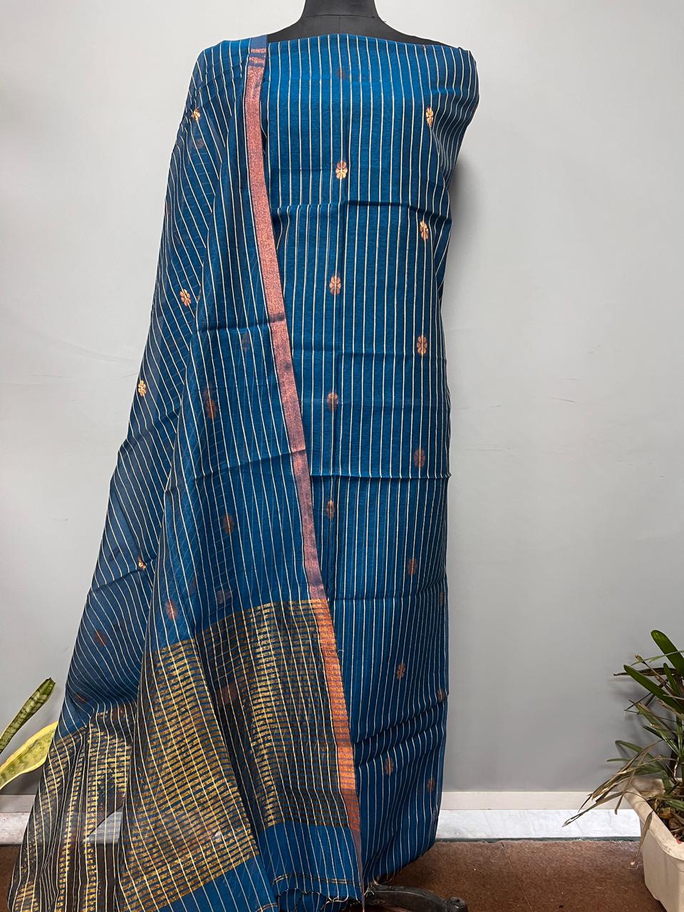 Pure Maheshwari Silk Hand Loom Unstitched Suit.(2pc Set)